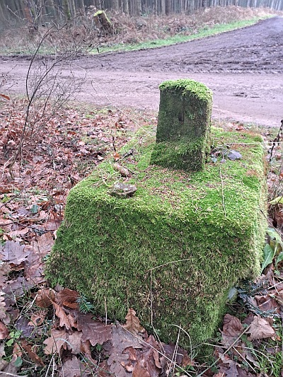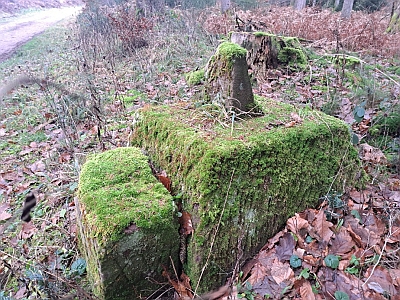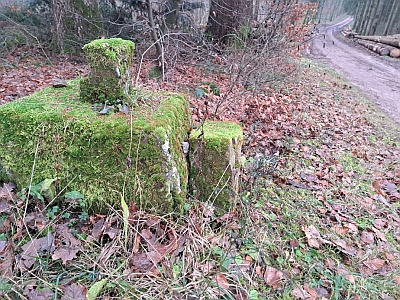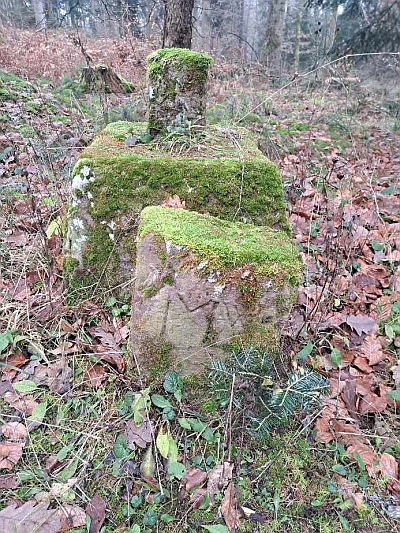 An den Sockel angelehnt 2 Grenzsteine. Noch lesbare Inschrift: MW. [1]