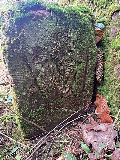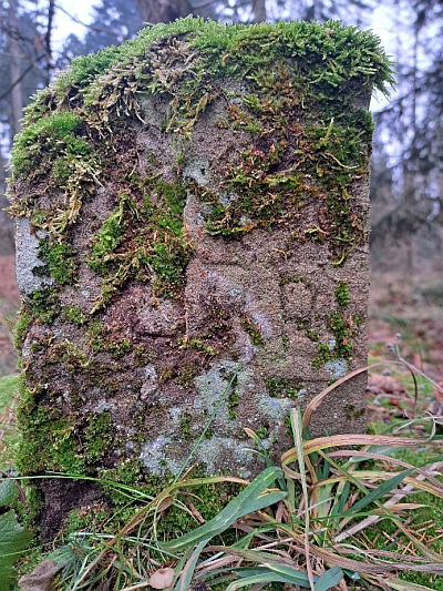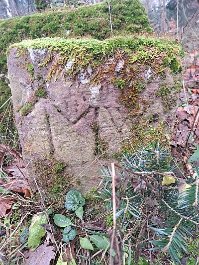 An den Sockel angelehnt 2 Grenzsteine. Noch lesbare Inschrift: MW. [1]