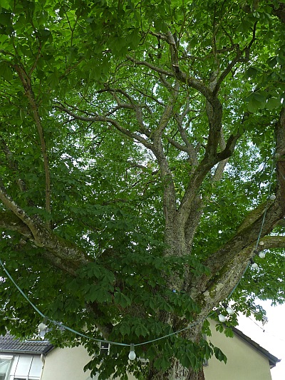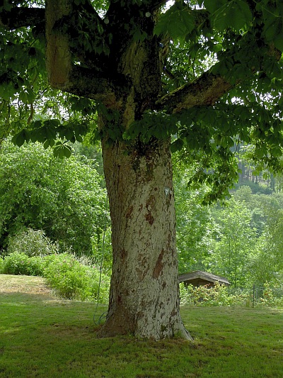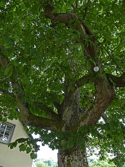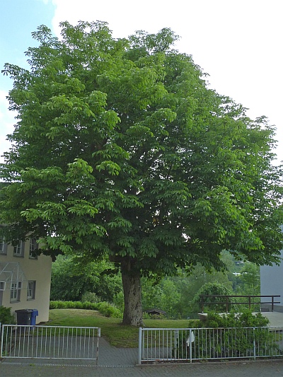 Roßkastanie - Aesculus hippocastanum. Ihren Beinamen Roß erhielt sie, weil die Maronen früher zur Linderung von Husten und Wurmkrankheiten bei Pferden verwendet wurden. [2]