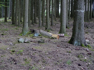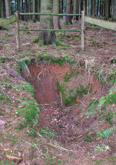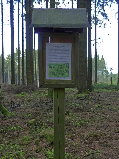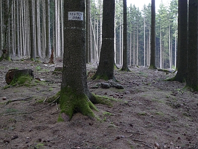 Das Keltengrab ist inzwischen offenbar vom Landesmuseum neu gesichtet worden. Im Gegensatz zu meinem letzten Besuch fand ich im August 2003 die Fundstelle deutlich markiert. Auf dem Bild sind vier Fichten mit einem weissen Streifen versehen. Diese umringen den Grabhügel. Etwas tiefer vom Weg ab findet sich auch eine mehr oder weniger gesicherte Grabungsstelle aus neuerer Zeit. In dieser wohnt der blaue Mistkäfer, der auf einer der Fotos zu sehen ist. Am Weg wurde eine Hinweistafel errichtet, auf der die Hintergründe zum Fund des Ortes erläutert werden.