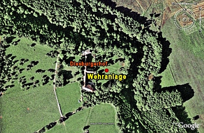 Diesburg: 1284 wird eine Diderischburch als Besitz der Abtei Echternach erwähnt. Wahrscheinlich handelt es sich um eine Wehranlage in der Nähe des heutigen Diesburger Hofes. Dieser dürfte dann der zugehörige Wirtschaftsbetrieb sein.