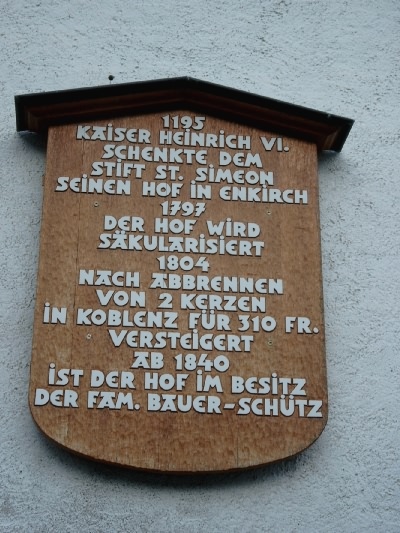 Im Jahre 1042 wurde vom Trierer Erzbischof Poppo (1016- 1047) das Trierer Kloster Sankt Simeon gegründet. Auch dieses Stift wurde von allen Seiten mit Dotationen und Schenkungen bedacht, und so bestätigte Kaiser Heinrich Vl. 1140- 1197) am 17. September 1195 dem Stift seine Güter und Besitzungen in Enkirch.
