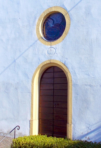 schließender Saalbau am höhergelegenen südlichen Ortsrand. Der 1853 erbaute, durch rundbogige Fenster bescheiden charakterisierte Putzbau wird durch den vierseitigen verschieferten Dachreiter unter kleinem Schieferhelm betont. Die Fassade schlicht mit gekehltem Rundbogenportal und darüber zwischen Ovalfenster ovale Datierungsplatte IHS 1853. Das neu renovierte Innere schlicht mit Voutendecke und wiederhergestellter Quadermalerei. An der Altarwand beidseitig eines Kruzifixes des 19. Jahrhundert Bildwerke des 18. Jahrhundert (hl. Johann Nepomuk undJosef). Am Übergang zur Chorschräge eine von der Vorgängerkirche übernommene, 1613 bezeichnete Sandsteinnische mit Figur des Kirchenpatrons; gegenüber beschädigte kleine Alabasterfigur des auferstandenen Christus aus dem frühen 18. Jahrhundert