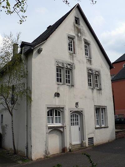 Zweigeschossiges Giebelhaus eines Moselschiffers, vermutlich Mitte 16. Jahrhundert, an dessen giebelständiges Hinterhaus ein höherer, traufständiger Seitenbau mit Fachwerkobergeschoß und -giebel wohl um 1600 angefügt wurde. Das heute isoliert stehende Gebäude