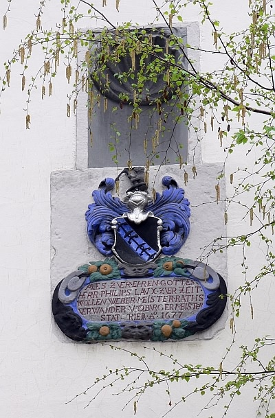 E(lisabeth) L(onguich). Das um 1980 sanierte Fachwerkobergeschoß der Renaissance zeichnet sich durch die im Moselraum typische enge Ständerstellung aus. [1]