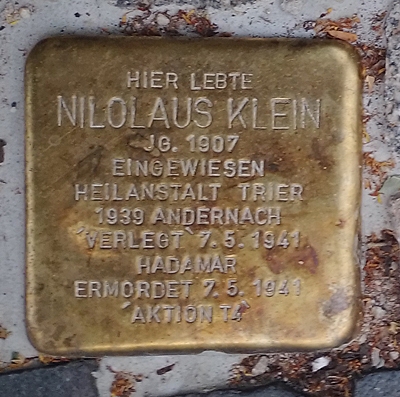 Anfang 1939 beherbergte das Brüderkrankenhaus in Trier 542 Psychiatriepatienten. Diese mussten auf Anordnung des Oberpräsidenten der Rheinprovinz in staatliche "Provinzial Heil- und Pflegeanstalten" verlegt werden. Von diesen Anstalten aus wurden diese Menschen wiederum in andere Einrichtungen verlegt, wo viele von ihnen im Rahmen der so genannten "Euthanasie-Aktion T4" ermordet wurden.