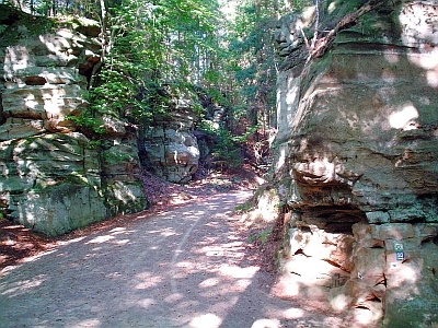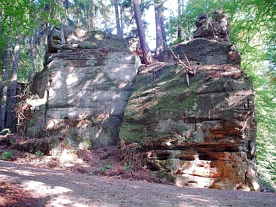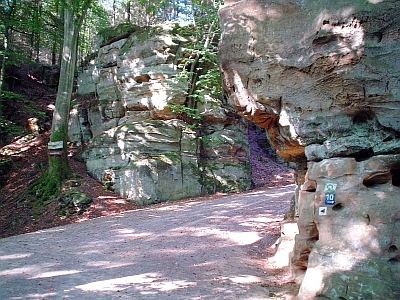 Auf den Wänden der kleinen Schlucht, durch die ein Pfad vom Waldweg zurück auf die Hochfläche führt, wurden mehrere Inschriften gefunden. Von den Wasserfällen kommend, findet man direkt auf der Ecke zweimal das Wort via. Biegt man auf den Pfad ein, sieht man rechter Hand die nächste Inschrift fast am Hangfuß. Ein Stück weiter bergauf folgt dann links eine weitere. Diese von Wissenschaftlern untersuchten Buchstabenfolgen im oberen Teil der Schlucht ergaben keinen Sinn.