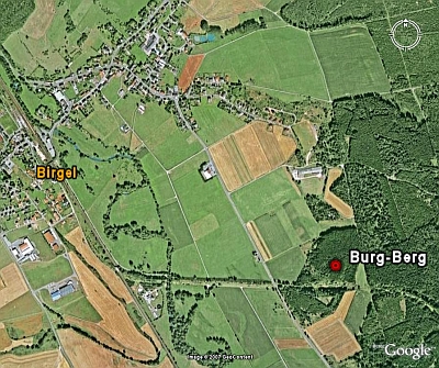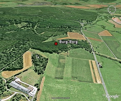 Eine Notiz des Verfassers, der zusammen mit Schindler Anfang November 1976 diesen Platz aufsuchte, hat folgenden Wortlaut: Wir stellten eine wallähnliche Böschungslinie fest, die etwa auf der Höhenlinie 440,0 Meter über Normal-Null ringsum verläuft. Unterbrochen wird diese Befestigungslinie auf der Südseite durch einen 100 Meter breiten Bahneinschnitt. Eine Neuvermessung ist nicht erforderlich. 1956 wurden am Rand des Burg-Berges römische Gräber geborgen. Durch die westliche Talniederung zieht in gerader Linie die Römerstraße Oos (Ausava) - Jünkerath (Icorigium).