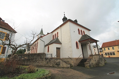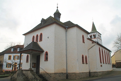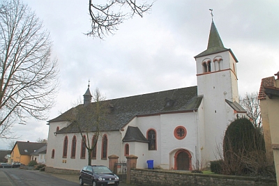 Die Kirche des 804 erstmals urkundlich erwähnten Ortes wird 1330 genannt. Heute besteht sie aus einem romanischen Turm, dem spätgotischen Chorraum und dem 1929/30 vom Architekten Peter Marx, Trier, errichteten fünfachsigen Langhaus. Dieses ersetzt ein barockes Schiff von 1788.