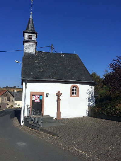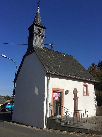Neben dem Eingang der Kapelle ein Sandstein-Wegekreuz aus dem Jahr 1772, das in 1988 erneuert wurde.