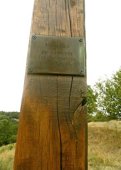 [...] Der Wegweiser "Zum Maarkreuz" führt uns zu einem der bekanntesten Symbole der Vulkaneifel. Die Initiatoren Fernschild und Kirsch gestalteten das Maarkreuz aus dem Gefühl des Dankes heraus. Das Kreuz, weithin sichtbar, sollte die Gegend beherrschen, ohne die Landschaft störend zu verändern. Dechant Thomes und die Gemeindeväter von Schalkenmehren griffen den Plan freudig auf. Wenn der heutige Standort des Maarkreuzes auch nicht mehr der ursprüngliche ist, er bietet dem Wanderer einen erholsamen Ruheplatz und einen phantastischen Ausblick auf das Schalkenmehrener Maar und die weite Vulkanlandschaft.
