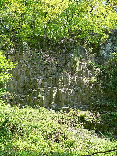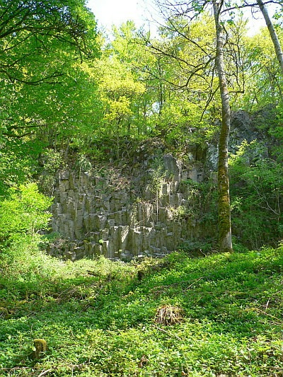 Hier ergoß sich einst der Lavastrom des Mosenbergs in die Kleine Kyll. Die Felsflanken bestehen aus Basaltsäulen.