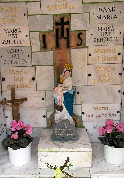 Notdürftig verbarg er sich hinter einem Haselstrauch und rief die Gottesmutter um Hilfe an. Die Räuber gewahrten ihn nicht, und er kam unbehelligt heim. An der Quelle des Serriger Baches ließ der Gerettete eine Kapelle bauen mit einem Muttergottesbild.