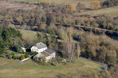 Dem Wohnhaus südlich vorgelagert der parallel gestellte, breitgiebelige ältere Bau des ehemaligen Fährhauses, das mehrfach erneuert und traufseitig erweitert wurde. Altbestand des verputzten Bruchsteinbaus ist ein tonnengewölbter Keller mit rundbogigem Zugang und fünfeckigem Scheitelstein sowie ein 1788 (?) datierter Türrahmen. Im Kern ist das Gebäude jedoch älter. Signifikant die durch einseitige Abschleppung des Giebels auf eingeschossige Höhe erreichte Giebelkontur.