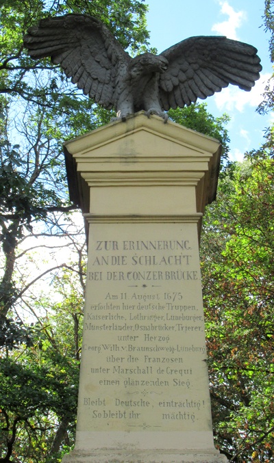 Zur Erinnerung an die Schlacht bei der Konzer Brücke am 11. August 1675 (Inschrift) 1892 errichtetes Denkmal.