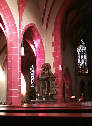 (ehemalige Franziskaner-Klosterkirche). Das heutige nördl. Seitenschiff mit dem Gnadenaltar wurde 1479 errichtet und 1512-16 durch Erzbischof Richard von Greiffenclau erweitert.