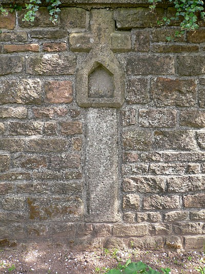In die Mauer an der Abzweigung der Straße nach Desserath und Rascheid wurde ein Nischenkreuz eingemauert. Das Sandsteinkreuz ist das zweitälteste Kreuz in Meisburg. Auf dem oberen Kreuzteil sind einige nicht mehr identifizierbare Fragmente (Buchstaben, Ranken?) zu erkennen, darunter die Aufschrift: