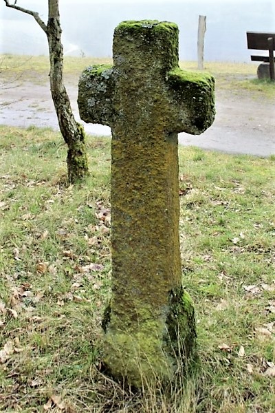 Lavatuffkreuz, vermutlich aus dem 16. Jahrhundert. Es soll errichtet worden sein, um von einer Hungersnot befreit zu werden (Meyer). Ursprünglich stand es auf dem Gipfel des Steffelberges, von dem es wegen des Lavaabbaues 1972/73 umgesetzt werden musste; seit März 2001 am jetzigen Standort.