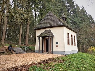 Am 15. Juli 1949 wurde die Kapelle durch eine Explosion von Sprengstoff, der dort in einem Bunker lagerte zerstört. es war ein dringendes Anliegen der Prümer Bevölkerung die Kapelle wieder aufzubauen, galt sie doch als eine vielbesuchte Gebetsstätte besonders in der vorösterlichen Zeit und als ein Wahrzeichen für Prüm und das Umland. Der Standort der alten Kapelle musste aus verschiedenen Gründen als Standort für die neue Kapelle ausscheiden.