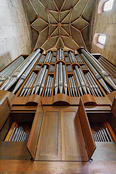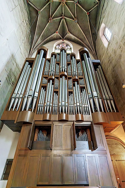 Am 10eptember 1977 konnte dann die jetzige Orgel geweiht werden. Es ist ein Werk der Orgelbauwerkstatt Prof. Karl Schuke GmbH und steht an der Stirnwand des südlichen Querschiffes. [1]