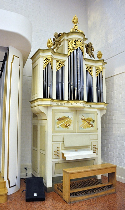 Das Instrument befindet sich im Konzertsaal und ist sowohl in seiner klanglichen als auch äußerlichen Gestaltung dem Barock nachempfunden.