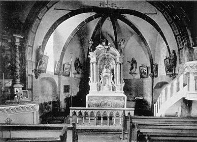 ihrer Kirche wiederaufgebaut. Zu den vorhandenen Patronen Petrus und Paulus hätten sie den heiligen Bartholomäus hinzugegeben. Die Kirche soll früher einmal Klosterkirche gewesen sein, wofür das bis um die Jahrhundertwende noch erhaltene Chorgestühl und kleine barocke Figuren der Heiligen Franziskus und Antonius im Seitenaltar zeugen sollen.