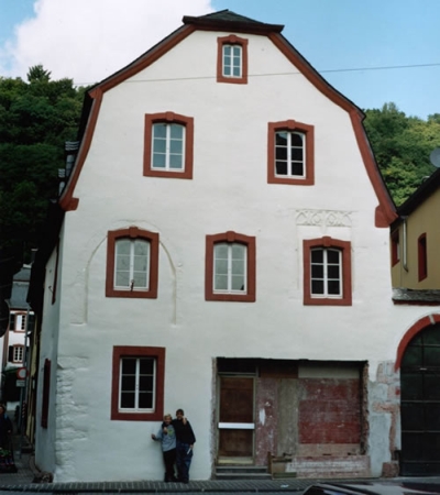 Massivbau von 1592/93, das älteste datierte Gebäude in Ehrang, urspr. öffentliche Funktion, erstmals um 1700 umgebaut, erhielt es beim erneuten Umbau 1770 ein Mansarddach mit Krüppelwalm. Im 20. Jahrhundert Als Metzgerei, danach lange Zeit leer, sollte es wieder einer Wohnnutzung zugeführt werden, in zwei Räumen sind Kölner Decken aus der Zeit um 1700 erhalten, und aus der gleichen Zeit eine Takenanlage mit reliefierter Takenplatte und darüber liegendem Takenschrank. [2]