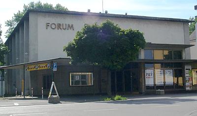 Erbaut 1955 / 56 für die französischen Besatzungstruppen nach Plänen von Walter Hassbach auf dem Gelände des römischen Forums.