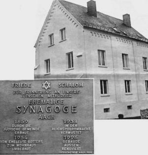 Erinnerung an jüdische Mitbürger. Gedenktafel an der ehemaligen Synagoge in Aach - 350 Jahre jüdische Gemeinde.