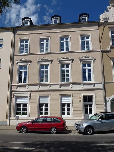 Das Wohnhaus Nr. 56 wurde nach Entwurf des Bauunternehmers Joseph Weis von 1876 für den Kaufmann Johann Nicolaus Müller errichtet. Die Tuchfabrikanten Friedrich und Emil Müller (ersterer wohnte bereits 1879 in Nr. 56) ließen das Wohn- und Geschäftshaus Nr. 57 von dem Bauunternehmer Joseph Mendgen 1902/03 als Comptoir ihrer Tuchfabrik mit einem Ladenlokal für das Tuchversandgeschäft erstellen, damals wurden beide Gebäude innen miteinander verbunden.