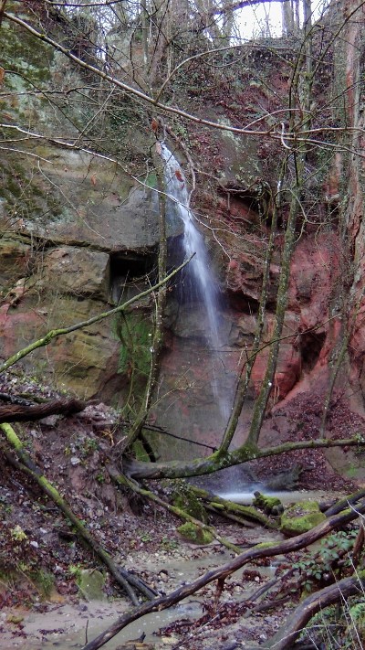 Naturdenkmal Nr. 12, 1 Sandsteinfelsengruppe und Wasserfall mit Sandhöhlen im Busental
