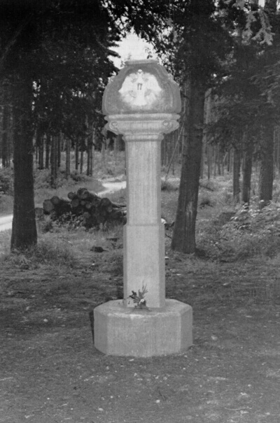 Etwa zwei Kilometer nordwestlich von Wehlen erhebt sich ein 330 Meter hoher Bergkegel, der sogenannte Kreinkopf, dessen Gipfel mit einem den Wald überragenden Aussichtsturm gekrönt ist und so einen herrlichen Weitblick in das Mosel- und Eifelland gestattet. Wo diese Bergkuppe in das Wehlener Hochplateau, die sogenannte Wehlener Heide ausläuft, kreuzen sich die Wege Wehlen-Siebenborn und Zeltingen-Lieser. Just an der Kreuzung steht ein altes Wegekreuz aus rotem Sandstein, das eine ganz absonderliche Form aufweist: Auf einem breiten, dreikantigen Sockel steht eine ebenfalls dreiseitige Säule von etwa V/i Meter Höhe. Diese trägt eine fast spitz auslaufende Krone mit drei, wiederum dreieckigen Bildflächen, auf denen die drei göttlichen Personen symbolisch dargestellt sind. Von diesem eigenartigen Dreifaltigkeitskreuz heißt der Standort schlechthin Auf Dreifaltigkeit. Drei alte Lindenbäume, auch im Dreieck gepflanzt, beschatten das Standbild. Man geht wohl kaum fehl in der Annahme, daß Dreifaltigkeit eine vorchristliche Kultstätte gewesen ist, daß also der wahrscheinlich inmitten eines mächtigen Urwaldes und hochgelegene Platz eine Stätte heidnischer Götterverehrung und Versammlungsort war; daß daher bereits mit der Einführung des Christentums im Moselland dort christliche Wahrzeichen aufgerichtet wurden. Dafür, daß dort oben zur Zeit, als der Schwarze Tod unsere Heimat heimsuchte, ein Hospital für Pestkranke gestanden haben soll, gibt es jedoch keine Anhaltspunkte. Auch das Alter des Kreuzes ist nicht festzustellen, da die Jahreszahl der Errichtung, die sonst allgemein auf den Feld- und Wegekreuzen zu finden ist, fehlt. Doch dürfte es älter sein, als die meisten alten Kreuze auf der Gemarkung Wehlen, die vielfach dem Jahrhundert des Dreißigjährigen Krieges entstammen.