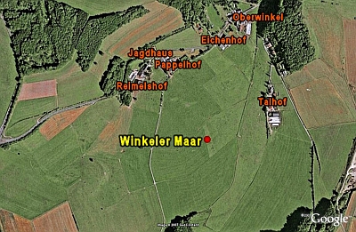 Südlich von Oberwinkel liegt eine in N-S-Richtung langgestreckte Wanne, die als Maar anzusehen ist. Ihre vulkanologischen Durchmesser betragen nach Noll (1967a: 11) 700 und 900 m, ihre Tiefe zwischen 45 und 50 m. Im südwestlichen Teil finden sich zwei Talanfänge. Basaltlapilli-Tuffe sind fast ringsum verbreitet. Auf dem SE-Hang werden nach Frechen schwarze Aschen und Lapillituffe von geschichteten aus Devonfragmenten bestehenden Tuffen überlagert, in denen sich südwestlich von Niederwinkel Auswürflinge alkalisierter Glimmerschiefer finden.