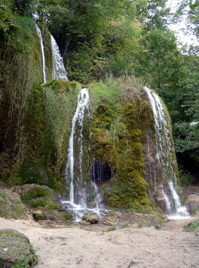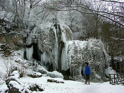Seit Ende der letzten Eiszeit vor circa 10.000 Jahren pendelten die drei aus den Karsthöhlen austretenden Quellwässer hin und her und haben seitdem eine 300 Meter lange und 100 Meter breite Sinterbank entstehen lassen.