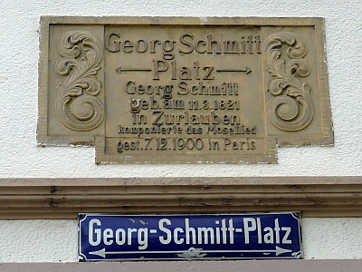 Georg Schmitt, geboren 1821 in Trier, gstorben 1900 in Paris; Musiker und Komponist, von 1832-42 Domorganist; 1846 entstand das "Mosellied". [1]