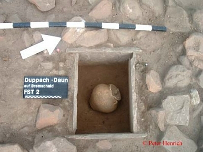 Seit den 20er Jahren des 20wurden auf der Flur "Auf Bremscheid" nordwestlich des Duppacher Ortsteiles Weiermühle bei Schürfungen und Prospektionen Fragmente von mindestens einem römischen Grabdenkmal gefunden. Durch die ehrenamtlichen Surveys der Mitglieder des Archäologischen Vereins Gerolstein, Herrn und Frau Surges (Weiermühle) und Herrn May (Koblenz), konnten die dazugehörigen römischen Siedlungsstellen durch zahlreiche Funde lokalisiert werden. Aufgrund der erkannten Fundstreuung war anzunehmen, dass es sich um einen größeren Siedlungskomplex (Villa Rustica) mit ausgedehntem Gräberfeld mit einem oder mehreren monumentalen Grabdenkmälern handelte. Die bisher bekannten Fundstellen erstrecken sich über eine Fläche von circa 3 ha.