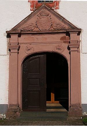 Das alte Pilasterportal von 1687 wurde im Neubau wiederverwendet In der Chornordwand hat sich eine spätgotische Sakramentsnische aus der Zeit des Chores,also um 1500 erhalten.