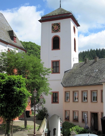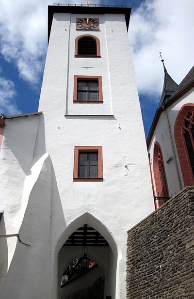 An der Pfarrkirche gelegener mittelalterlicher Eingang zum Burgbering und Glockenturm (erneuert 1829). [1]