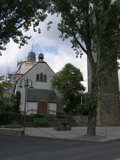 1889 erbauter neugotischer Saal. 1921 von Eduard Endler, Köln verändert. Seitenaltar aus dem Rokoko.