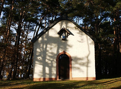 [...] Inmitten eines Kiefernhains stehender Putzbau mit dreiseitigem Schluß. An der Giebelwand über dem rundbogigen Portal ein Vordach für die Figur der heiligen Anna. [...] Das Innere schlicht und mit Figurenschmuck des späten 19. Jahrhunderts ausgestattet. Die 1870 eingeweihte Kapelle wurde von den Teilnehmern am deutsch-österreichischen Krieg 1866 gestiftet und ist Prozessionsziel am Fest der Pfarrheiligen. [1]