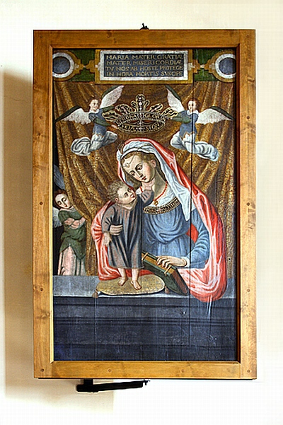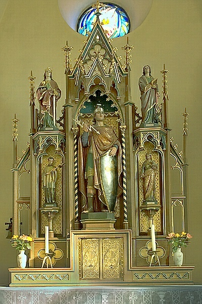 Im Innern tragen kräftige Pilaster ein Stichkappengewölbe. Die umfassende Restaurierung von 1992 gab dem Raum wieder Teile seines Altangestammten Inventars zurück: u.a. ein hölzernes neugotisches Altarretabel, das bereits 1942 entfernt worden war. Die zugehörigen Heiligenfiguren sind auch in ihrer farblichen Fassung, des späten 19. Jahrhunderts von guter Qualität. Erhalten haben sich zwei großformatige Holzbilder, die auf beiden Seiten Darstellungen aus der Passionsgeschichte, der Rosenkranzgeheimnisse und Heilige des Jesuitenordens zeigen. Sie stammen aus der Zeit vor 1700.