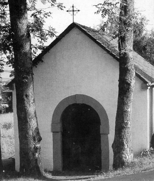 Vier Eschen umstehen den schlichten, fensterlosen Rechteckbau des 18. Jahrhunderts. Ein Rundbogenportal mit Kämpfer- und Keilsteinen führt ins tonnengewölbte Innere. Vor der Rückwand mit zwei kleinen Figurennischen steht ein steinerner Altarblock mit schlichtem Kruzifix. [1]