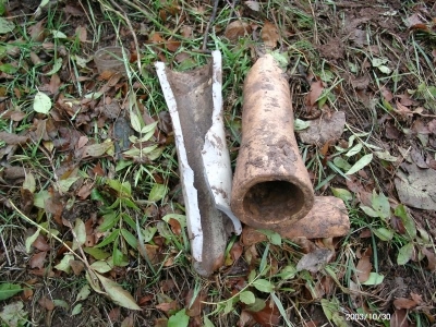 Bei Ausschachtungsarbeiten in der Ortslage von Kerschenbach wurden alte Wasserleitungen gefunden, die noch im Erdreich verlegt sind.