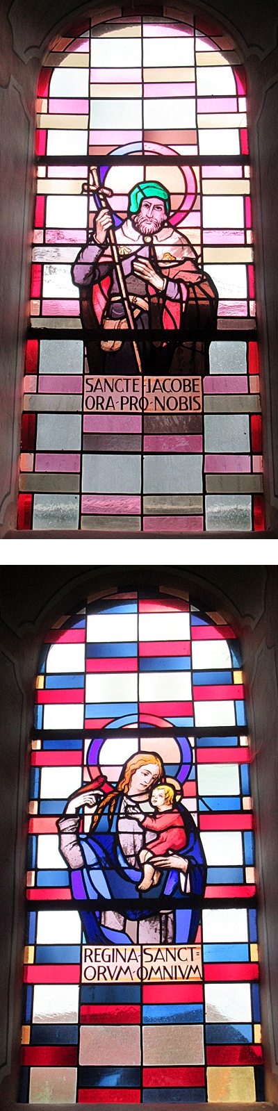 Ein gemauerter Altarblock mit einem Monolith als Altarstein trägt ein zweigeschossiges Retabel der späten Renaissance. Im Untergeschoss enthält dies den Tabernakel, im verjüngten Obergeschoß eine Figur desJakobus mit seinen Arttributen, dem Pilgerstab und den Jakobsmuscheln. Der Seitenaltar an der südlichen Ostwand des Schiffes trägt ein barockes kleines Altarretabel, das aus zwei säulengerahmten Nischen besteht. In ihnen haben Terrakottafiguren des auferstandenen Christus und des drachentötenden Erzengels Michael aus der Zeit um 1900 Platz gefunden. An der Nordwand des Kirchenschiffs befindet sich ein Ölgemälde auf Holzplatten, das ursprünglich zu einem Altar gehörte und die heilige Margarete und die heilige Barbara darstellt. Nach der Widmungsinschrift wurde es 1644 gestiftet. 1985 erfolgte eine Restaurierung des Inneren und Äußeren.