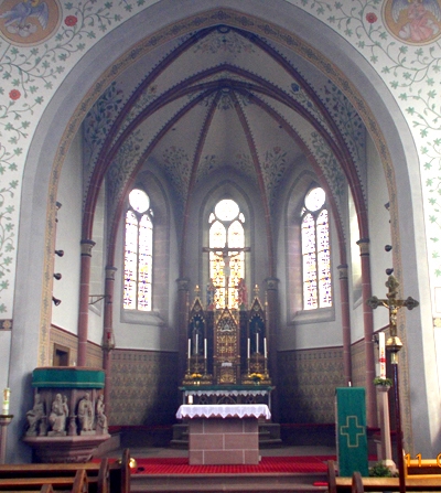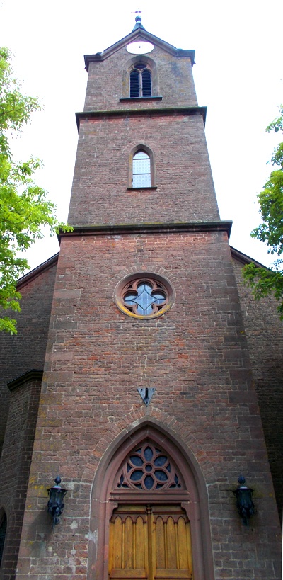 Neugotischer Rotsandstein-Saalbau, 1874/75, Architekt Heinrich Bruck, Wittlich; mit Ausstattung; Kriegerdenkmal 1870/71, Obelisk, 1875; barockes Schaftkreuz, bezeichnet 1729. [2]