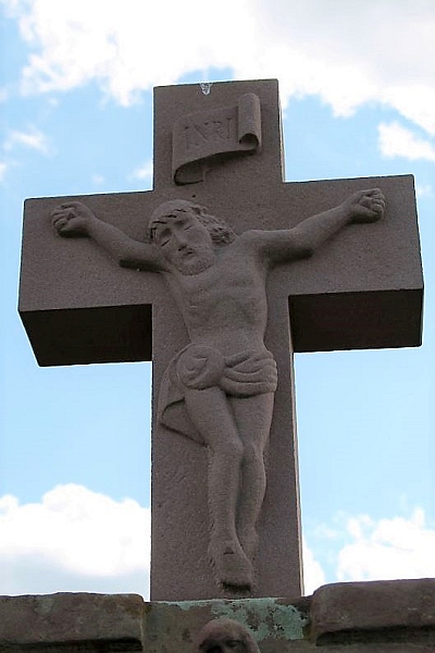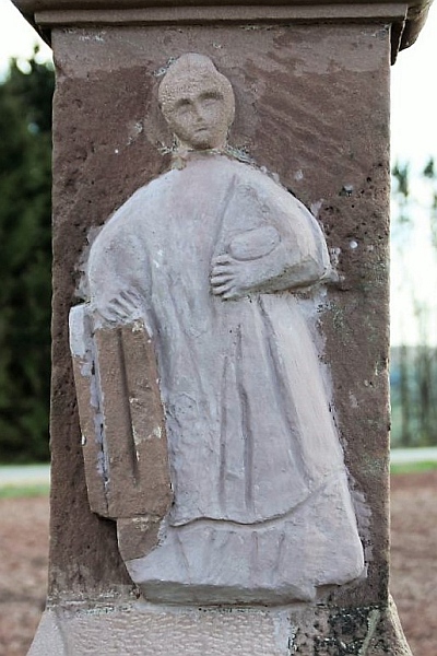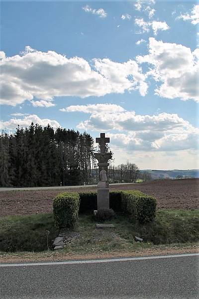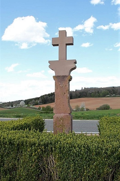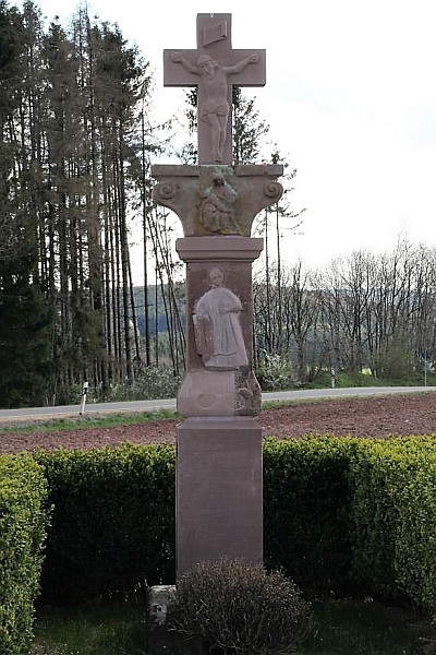 An der Straße Richtung Schloßheck / Orlenbach erhebt sich auf der Höhe in der Nähe der Straßenkreuzung ein hohes barockes Sandsteinkreuz, das in Folge der starken Verwitterung große Schäden aufwies. Es wurde gesichert und restauriert. Zu erkennen ist die Figur des heiligen Laurentius, der mit dem Eisenrost dargestellt wurde. [1]