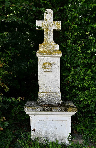 Altarkreuz westlich der Ortslage am Hangfuß und Waldsaum. Am kubischen Sockel ist das Stiftungsjahr 1855; darüber ein schlichtes Schaftkreuz, ebenfalls unter Anstrich. Am Schaftrelief Lamm Gottes, das einfache Balkenkreuz mit gußeisernem Korpus. Wohl ein Prozessionsaltar. [1]