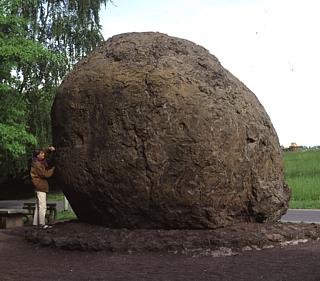 Lava-Museum mit Lavabombe (6 Meter Durchmesser, Rauminhalt circa 56 m³, Gewicht mindestens 120 t). Die Basaltkugel aus blasenreichem Olivin-Basalt, wurde 1969 im Steinbruch Wartgesberg bei Sprengungen herausgebrochen.