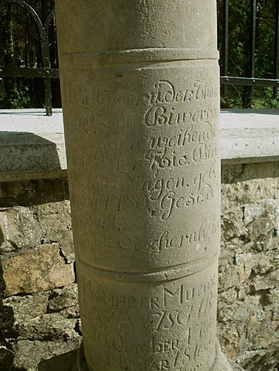 Der kurz vor 1939 für die wenigen Familien des Ortes angelegte Friedhof ist in seltener Unberührtheit erhalten geblieben. [...]