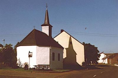 In der Nähe des nordöstlichen Ortsrands an der Abzweigung der Daleidener Straße parallel zur Hauptstraße erbaut und deshalb nach Nordosten ausgerichtet.